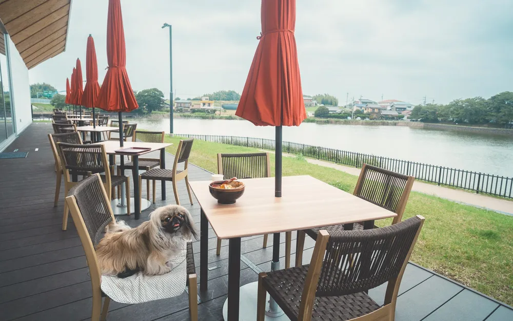 池を眺めながらテラスでワンコと一緒にラーメンをいただけるなんて、ラーメン好きにとって最高なロケーションじゃないでしょうか。