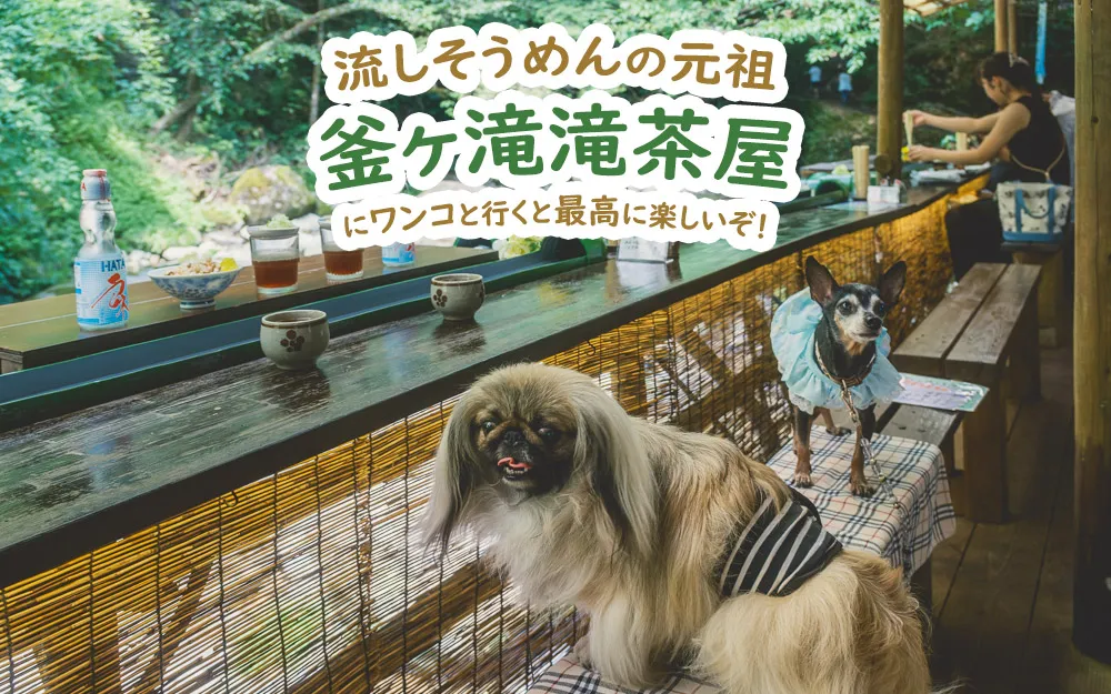流しそうめん発祥の地『阿弥陀ヶ滝荘』に行くと、大きな滝あるし避暑地だしワンコに優しいし、流しそうめん最高ってなる!